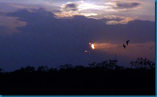 sunset over the lake, and a gator in the lake at the campground