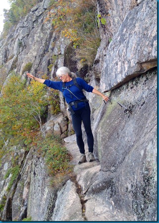 Fall color at near the top. John is in the center on the trail, and one more ladder at the end of the trail here.