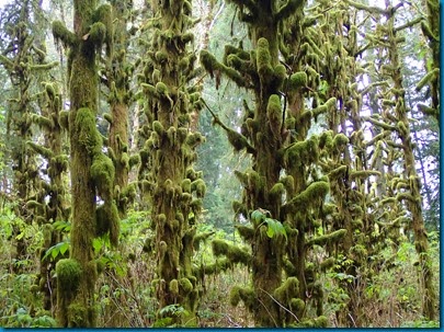 Munson falls is 266 feet tall, so tall the top gets lost in the fog. It is the highest falls in the coastal range of Oregon. There was a whole grove of these moss trees. They are alive and have leaves on the top.