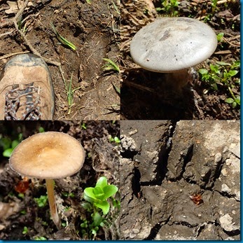 Just because I love these lilies so much, here is another photo. An elk track by my boot. They are about 4.5 inches long, moose live here too and have a similar print, but it is 6 inches long. A couple of mushrooms- silver and brown and not sure what kind of track.
