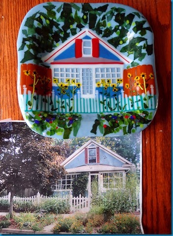 Cindy gave me this beautiful print of a painting by Cheryl St John of my front yard and neighborhood on Winona. I will have to get it framed. I then went to the May meeting of the Glass Artist Fellowship at the Woodland Glass Arts Studio at Mike and Sandi Penfounds house. Deb Carlson gave an excellent presentation of when she was the artist in residence for a month in Taiwan. Then Mike and Sandi did a live demo of making stacked glass murinne. It was fascinating.