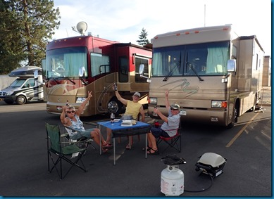 They have hook ups in the lot so you can stay in your coach while they work on it. Leslie and Scott were our first dinner guests at our new home. I updated our travel map with the trip of the new coach in red from Florida where it was purchased to Oregon.