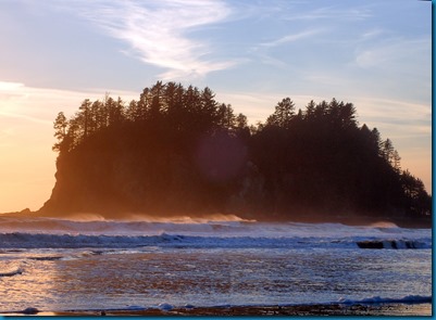 John in the sunset. James Island or A-KA-LAT to the Indians, in front of him is where the ancestors of the Quileute are buried. It is a scared island. Me in the sunset trying to be a petroglyph.