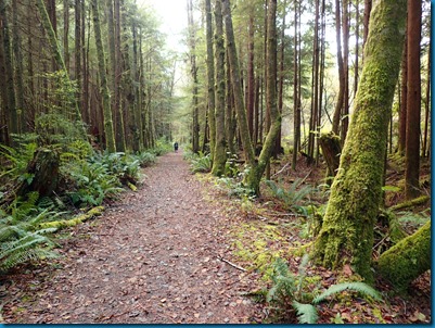 We hiked to Third Beach today. The trail starts with the you are here on the map. As you can see on the map it is wilderness for the next 20 miles down the beach. No development, no roads. We saw a few people backpacking in today. The path to the beach is a 1.4 mile trail through deep dark forest to the beach. This part of the forest was a ‘blow down’. In 1921 the wind blew all the trees here down, so these are second growth trees, only almost 100 years old. Very lush and mossy .