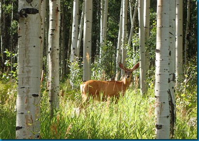 A few more of the aspen turning and some colorful ground cover. Closer to Maroon lake . The moose retreated to the trees by the lake and people are still crowding in to see it. . .