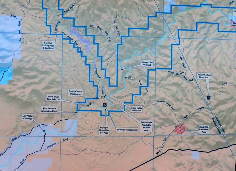 The Gila Box is where Bonita Creek Joins the Gila River. When the water his higher you can boat 23 miles of twists and turns of the spectacular Gila River canyon with 500 foot sheer cliff walls and dramatic geological features. Our view at lunch of the Gila River.